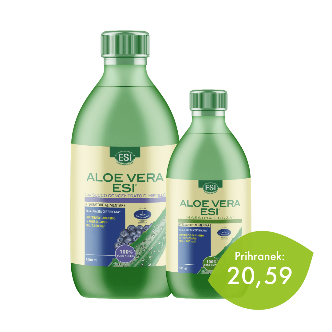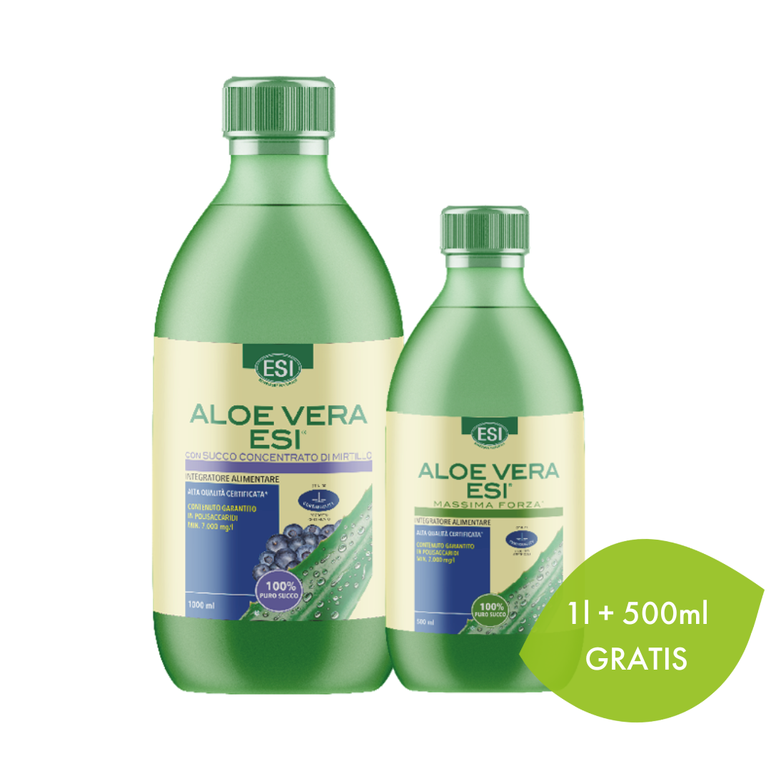 Aloe Vera ESI® sok borovnica je izjemno prehransko dopolnilo, pridobljeno iz listov Aloe Vere s posebno občutljivimi postopki, ki skrbno odstranjujejo zunanji del listov, ki vsebujejo aloin, da zagotovijo najvišjo kakovost in čistost. Dodan mu je naravni izvleček borovnice, ki soku Aloe Vera ESI® podarja prijeten okus.