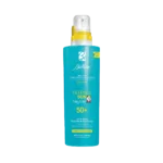 Mleko v spreju za zaščito kože dojenčkov in otroke pred soncem z visoko zaščito SPF 50+. Nova, ekološko združljiva formula je zasnovana za ponujanje trojne zaščite koži dojenčkov in otrok:
