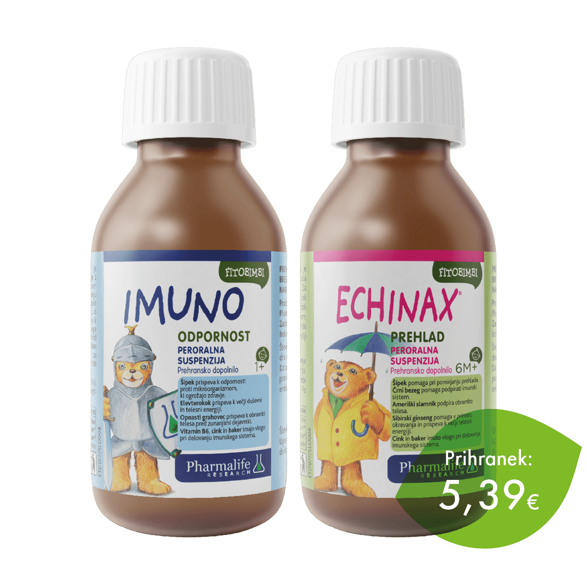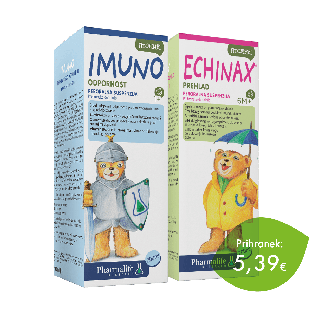 Fitobimbi Echinax: vsebuje kombinacijo rastlinskih izvlečkov, naravnega vitamina C iz šipka in mineralov (cink in baker). Je naravna in učinkovita pomoč ob prehladu otrok. S svojimi naravnimi učinkovinami pomaga umiriti otroški prehlad in podpre naravno obrambo telesa ob pričetku prehladnih obolenj. Primeren za otroke od 6. meseca dalje.