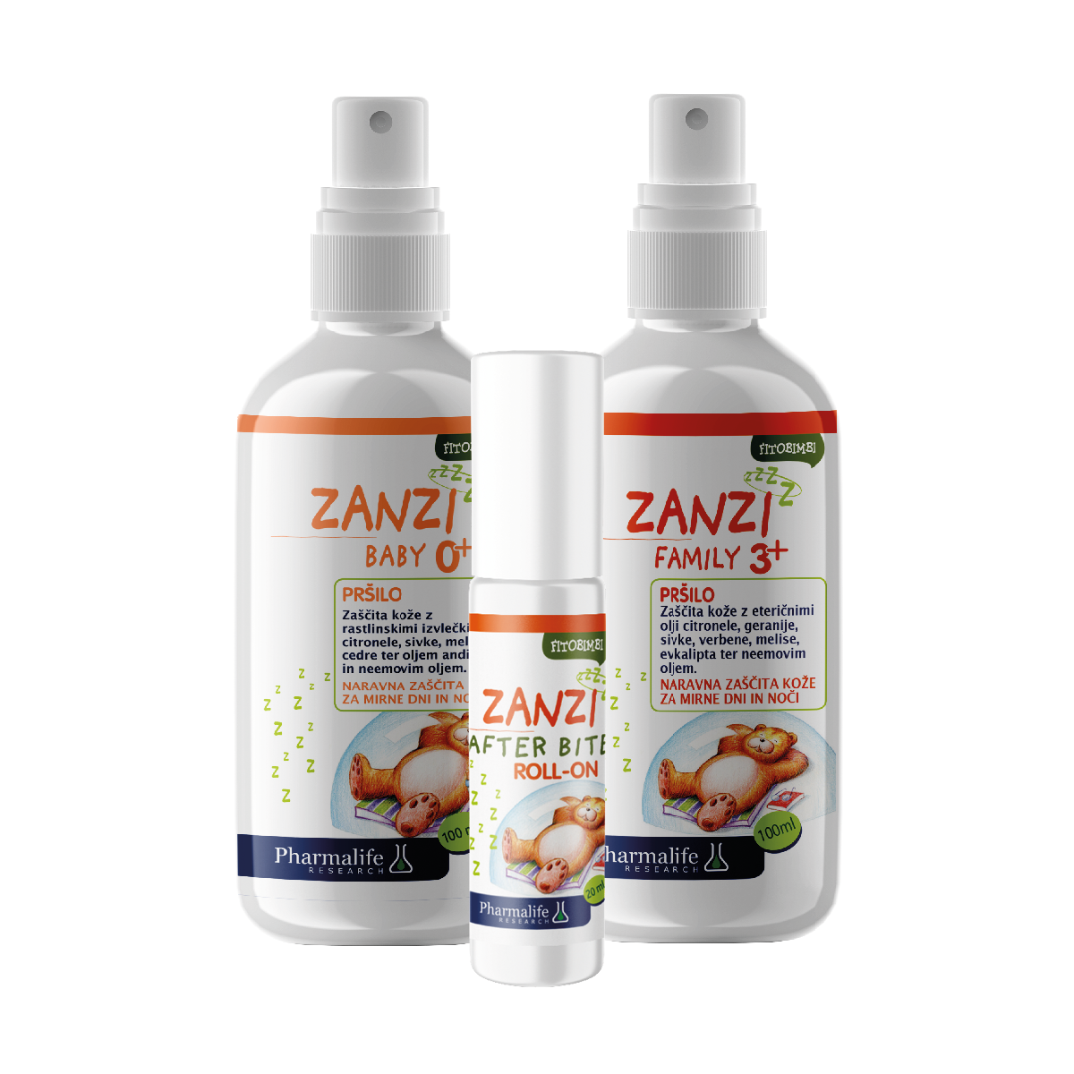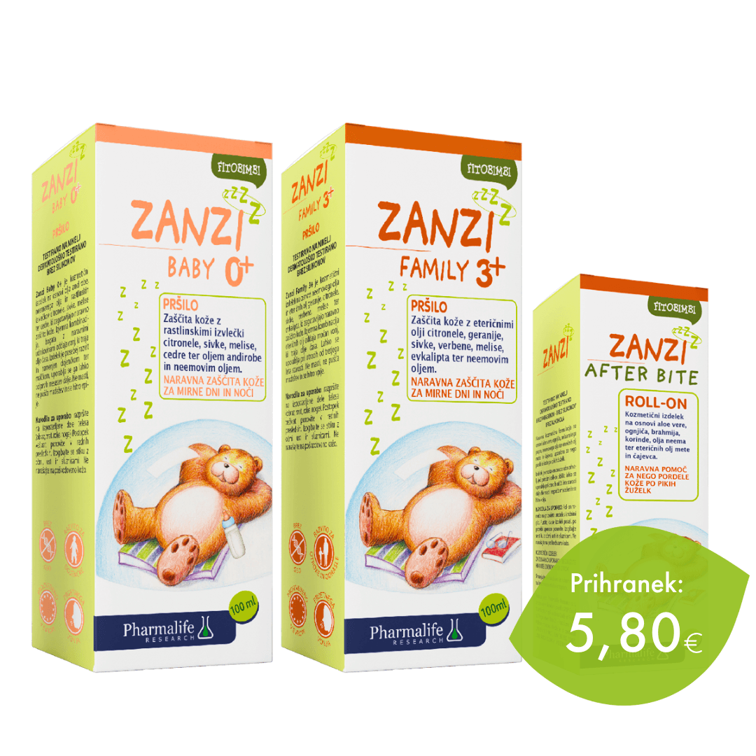 Fitobimbi Zanzi paket za vso družino vključuje 3 izdelke iz naravne linije Fitobimbi za zaščito kože pred nadležnimi gosti ter za nego pordele kože po pikih žuželk. Izjemna kombinacija naravnih učinkovin oddaja nežen vonj, ki traja dlje časa. Vsi izdelki so namensko in premišljeno razviti za vso družino – od najmlajšega pa do odraslega člana družine: