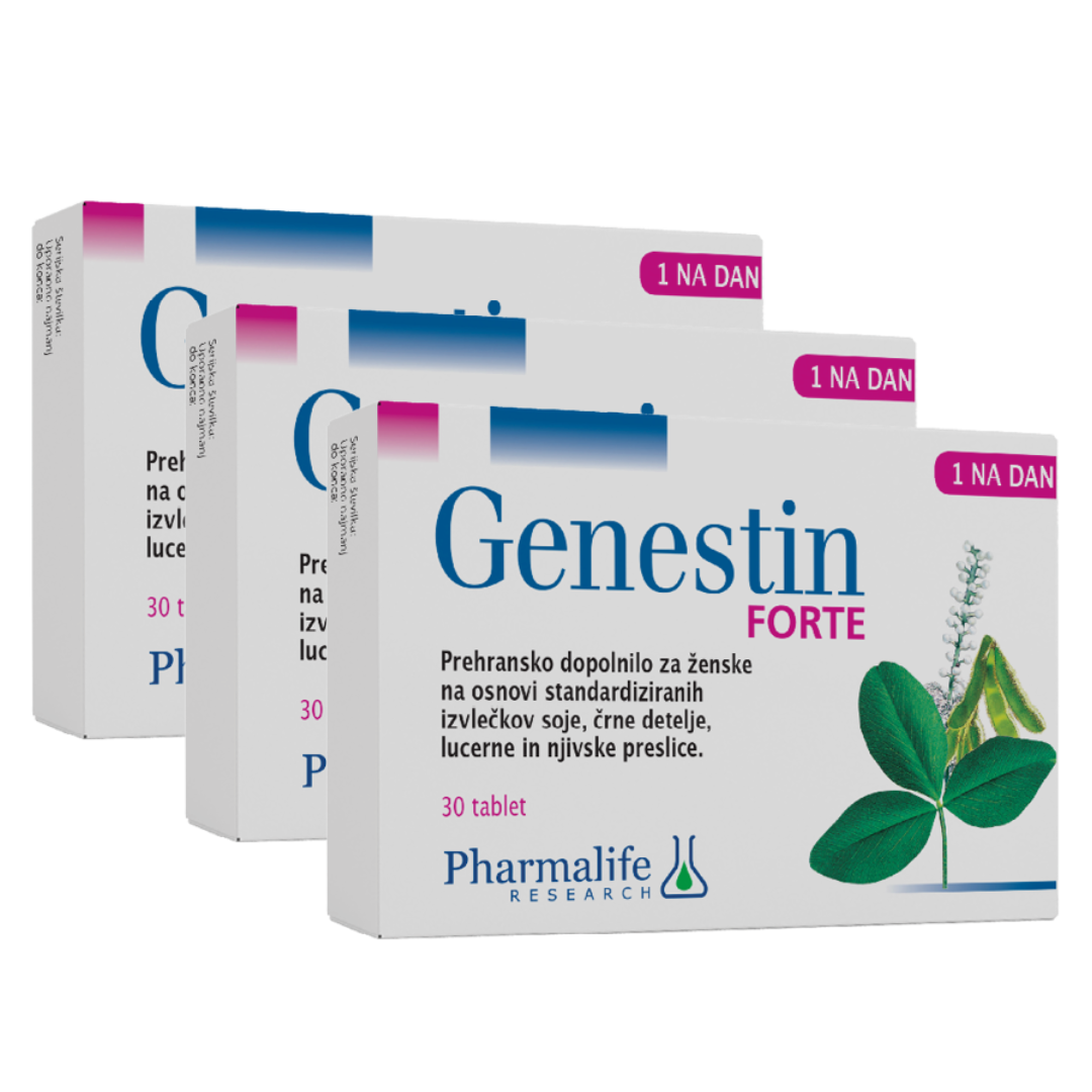 Genestin® Forte je vaš zaveznik v pomembnem prehodu vašega življenja – v obdobju menopavze. Vsebuje le najboljše izvlečke zdravilnih rastlin, ki so standardizirani z znano vsebnostjo aktivnih snovi.