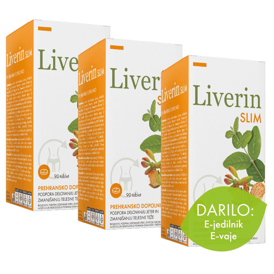 1. 3 x izdelek Liverin Slim (skupaj 270 tablet) za priporočljivo 3-mesečno terapijo,