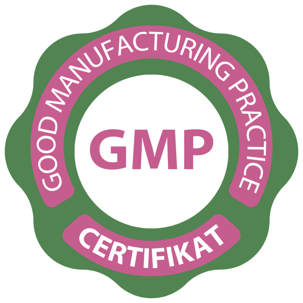 Izdelek narejen skladno z GMP standardom (GMP=v skladu z dobrimi proizvodnimi praksami – pravila in smernice, ki zagotavljajo, da so izdelki varni, kakovostni in narejeni pod strogim nadzorom.)